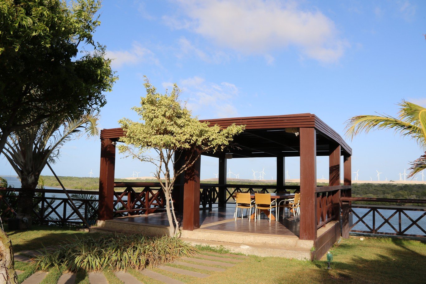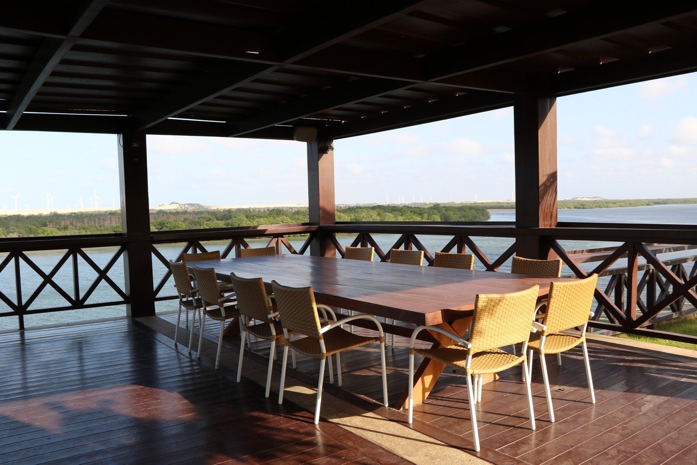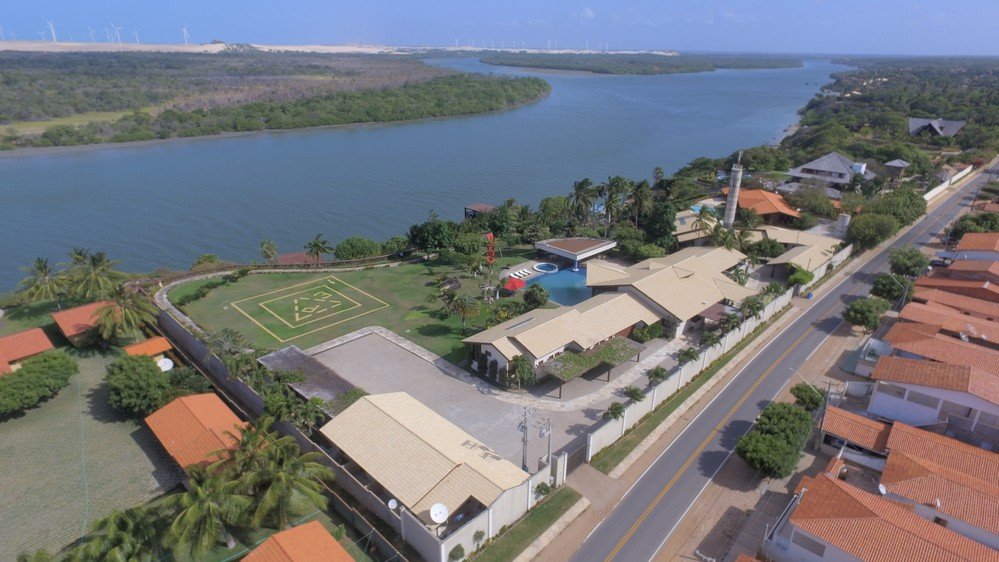 • Descrição: Exclusividade para você, chegue de carro, de lancha pelo píer ou de helicóptero, a mansão na beira do Rio Jaguaribe no centro de Fortim-CE te aguarda. A casa principal contém dois quartos, 2 cozinhas, 1 sauna e uma sala social ampla com um bar, aberta para a bela piscina, traga seus amigos e famílias para aproveitar uma refeição no mirante com uma bela vista do rio. A casa ainda possui dois chalés com quartos, um bloco de serviço e casa de caseiro. Venda totalmente mobilhada.